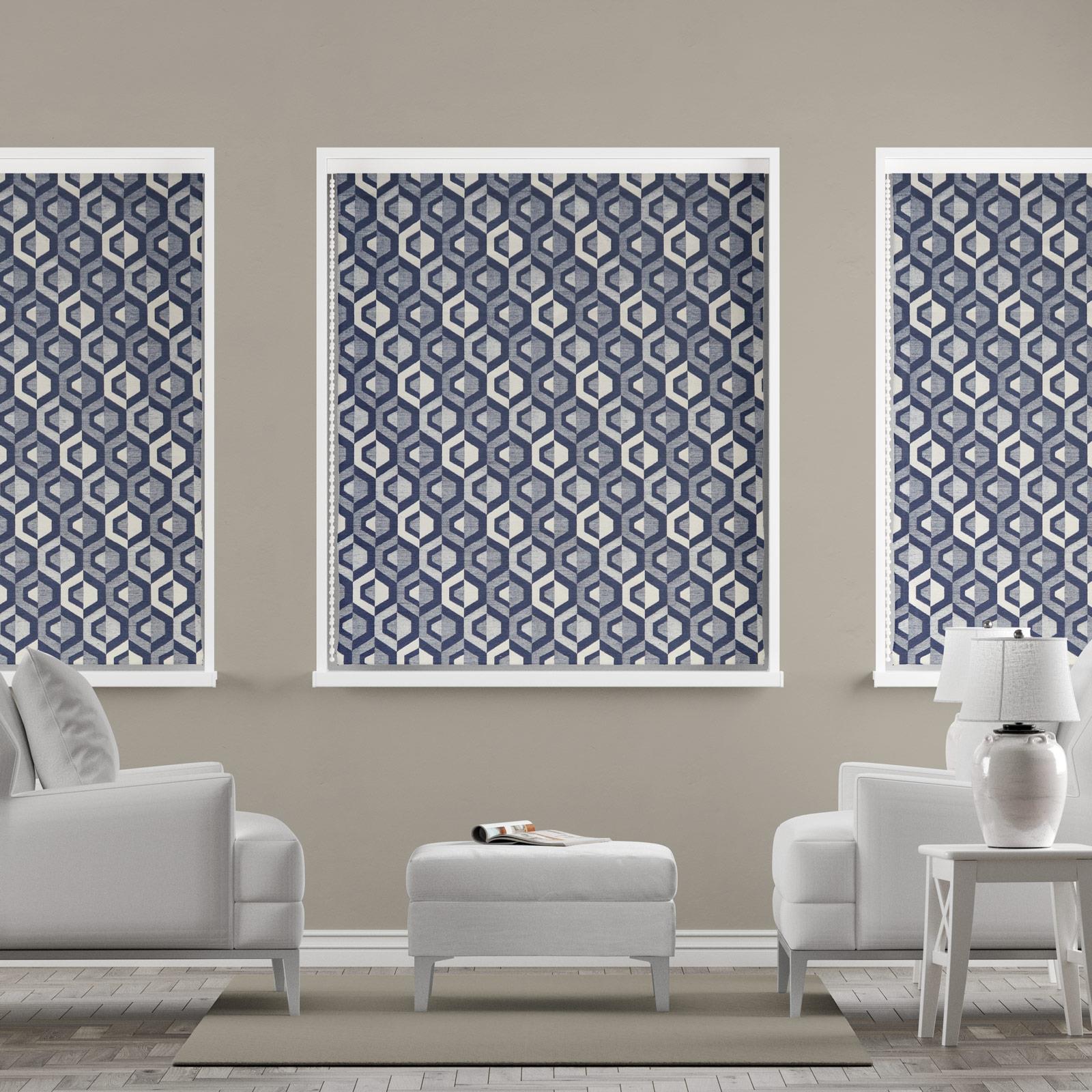 Looking for something bold and modern for your room? Look no further. The Wenden Navy roman blind is a contemporary woven geometric blind that will capture the eye of anyone in the room with its contrasting colours.