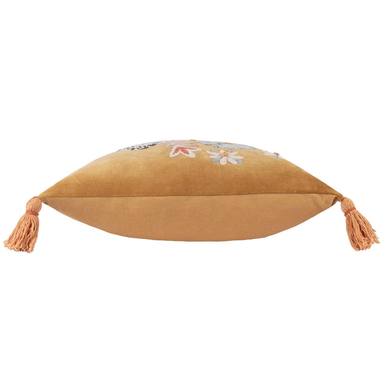• Complete with a plain cotton reverse, corner tasselled trim and hidden zip fastening