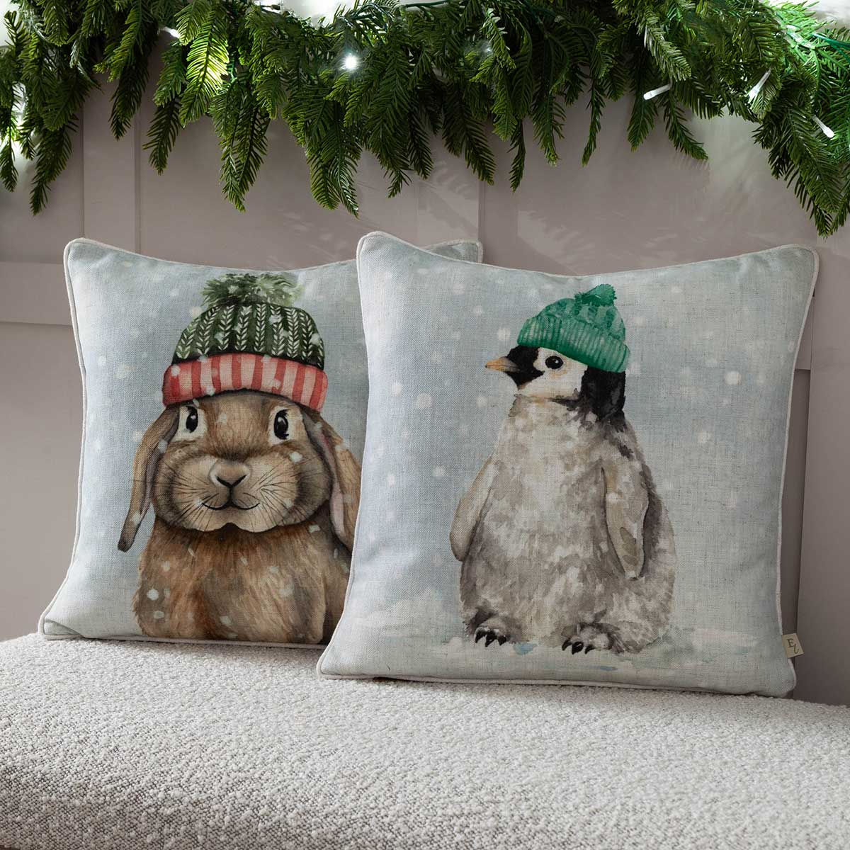 Winter Penguin Cushion Cover / Filled Cushion 17" x 17" (43cm x 43cm) by Evans Lichfield