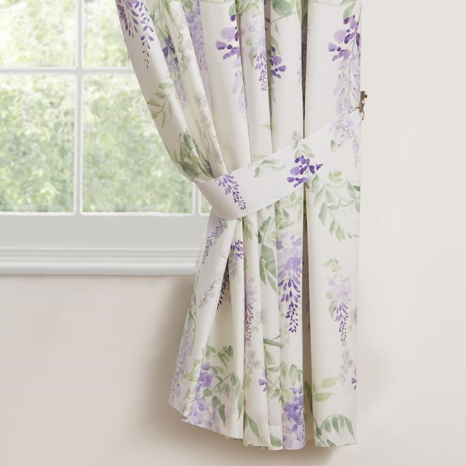 Transform your living space with these stunning hand-painted floral design curtains, perfect for adding a touch of elegance and charm to any room. Adorned with beautiful wisteria flowers on a soft white background, these curtains are designed to brighten up your décor. The 3" pencil pleat tape style ensures a classic look, while the fully lined fabric enhances privacy and insulation, making them ideal for any bedroom or living area.
