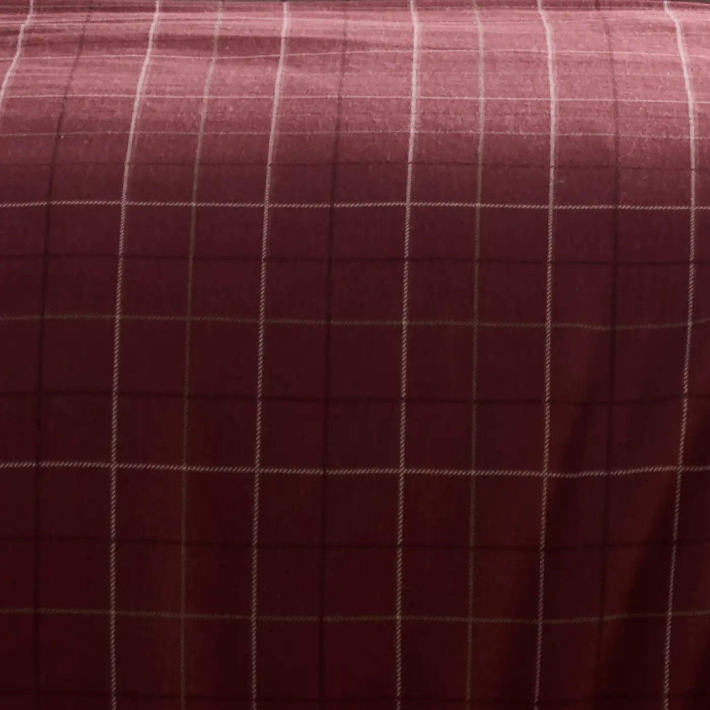 Transform your bedroom into a sanctuary of comfort with the Wynn Duvet Cover Set. This exquisite set features a charming natural check print on a rich burgundy background, effortlessly blending elegance with a homely touch. The fully reversible design allows you to switch up your space with ease, revealing the same delightful pattern on a natural base. Crafted from the softest 100% brushed cotton, the Wynn Duvet Cover Set envelops you in luxurious warmth, making those chilly winter nights feel irresistibly cosy.